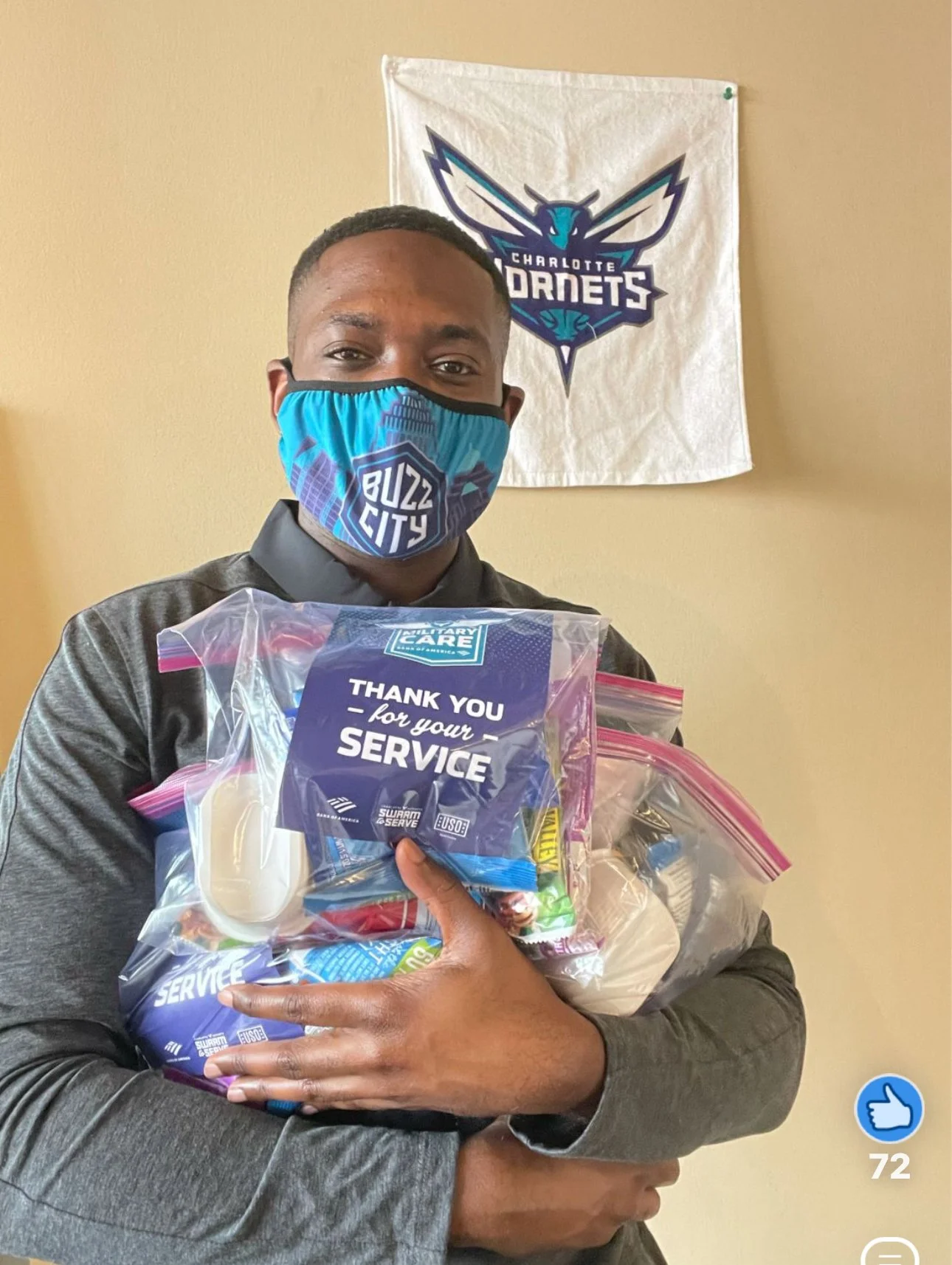 During his tenure with the Charlotte Hornets, De’Vaughn was apart of multiple ERG groups to learn different cultures and become an ally in underserved communities. This specific community initiative was sending care packages to retired vets in the Charlotte area.